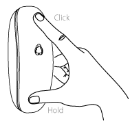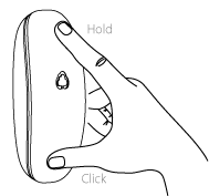 Click the lower region while holding the upper region to decrease fan speed until fan is off. An green light that rapidly flashes twice indicates fan is turned off. |